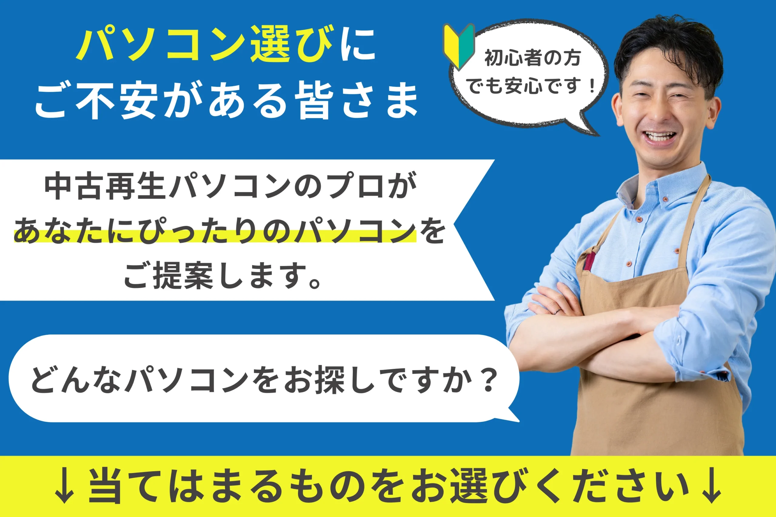 また簡単な質問にお答えいただくだけで自分にピッタリなPCがわかるパソコン診断も用意しております。